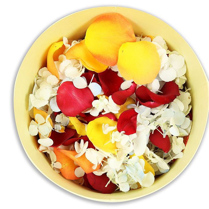 Our sophisticated arrangement combines elegance and nature, featuring a unique mix of beautifully selected flower petals. Perfect for any ceremony or as a thoughtful gift, its vibrant colors and refined design make a lasting impression.